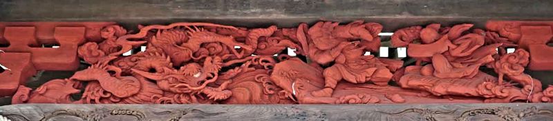 拝殿内部・欄間額。左に「公爵 一條 實孝」(さねたか)と書かれている。?