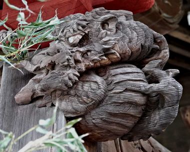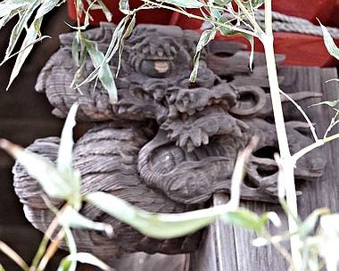 聞か猿。この面は聞か猿で、村と彫れているので奉納者の地名が彫られている様だ。