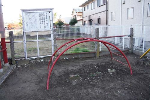 遊具。拝殿と同じ赤で統一感あり。