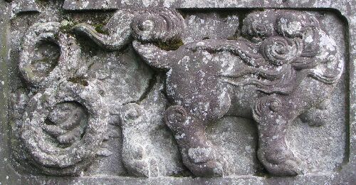 台座にも凝った浮き彫りの狛犬が楽しそうに遊んでいます。江戸の職人気質のなせる技でしょうか。