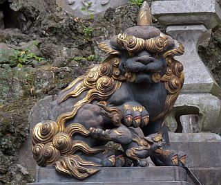 | 江戸の火消しの奉納。豪勢な狛犬です。拡大写真はこちら。 | |