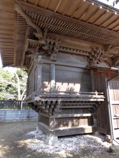 太政大神は木崎三三一番地にあって、祭神は藤原鎌足七世の末孫で正一位太政大臣藤原長良公です。仁寿四年(八五三年)八月權中納言に、更に斉衡三年(八五五年)六月に二位を授けられ、七月になくなられました。その後正一位太政大臣の位が追贈された方です。藤原長良公を祭神とする当社は、太政大神社とか、太政神社とか名前が統一されていませんが、太政大神が正しい名前のようです。安政六年(一八五四年)六月に太政大臣略縁起を起草し上総のみならず遠国にまで勧進して建てられたのが現在の社殿です。屋根を改修する前の本殿は「千木・鰹魚木」をいただいた格調の高い建物でした。文久二年(一八六二年)八月本殿が完成、が明治二十五年(一八九二年)十二月に浄水石盤が落成、昭和三年(一九二八年)早尾神官の縁起碑文が建立されております。