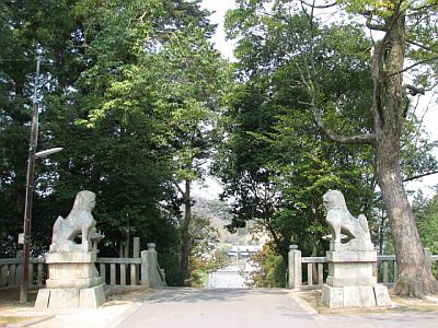 この神社は、196号線・今治バイパス・神宮交差点の南1km程の辺り、北向きに鎮座しております。我々が訪れたのは、12時15分頃。ズバリ逆光となり写真は全く冴えません。機会があれば、早朝か夕方今一度参拝したいと思います。深い緑に囲まれた広い境内を持つ重厚な神社です。神門を潜り、石段を登ると、異形の狛犬がお出迎えしてくれます。