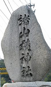 社号標と神社遠景。参道がJR予讃線に依り分断されたようです。