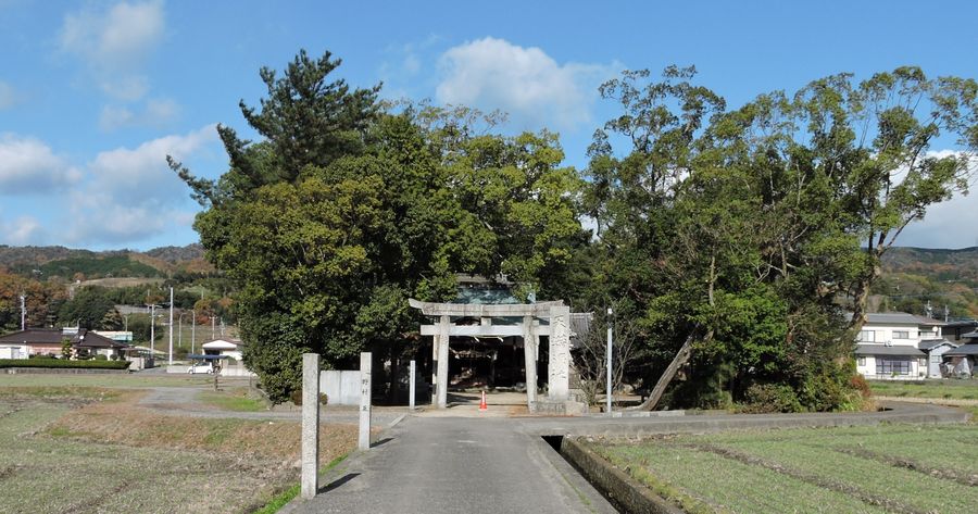この神社は、伊予鉄道横河原線・横河原駅の西1.2km程の辺り、志津川の街外れに鎮座しております。