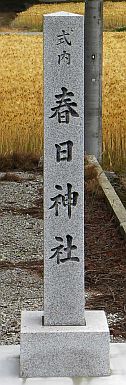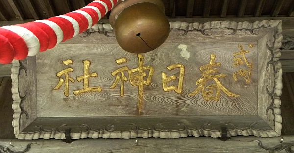 | 拝殿に掛かる扁額「式内 春日神社」 |