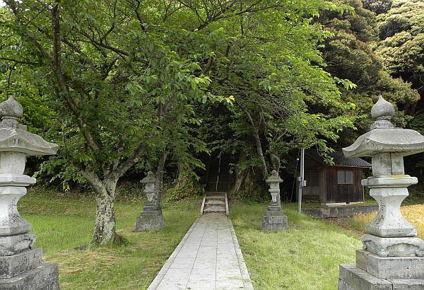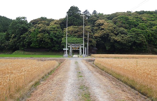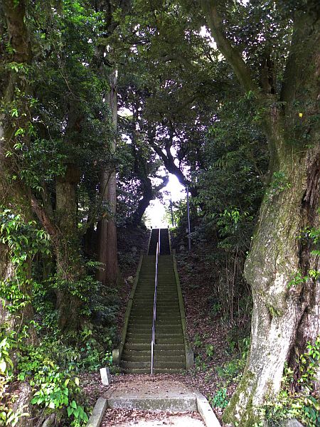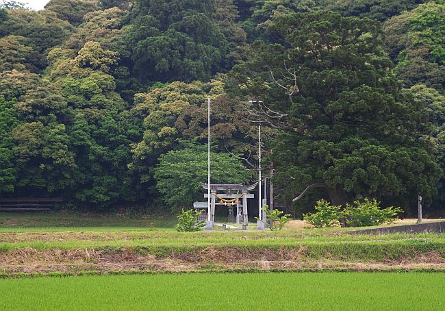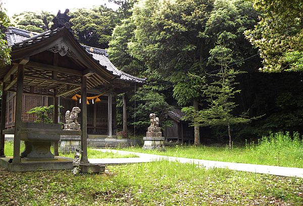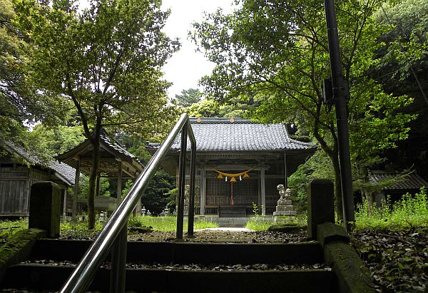山を背にした社地は社叢が濃く、静かで落ち着いた雰囲気の神社です。