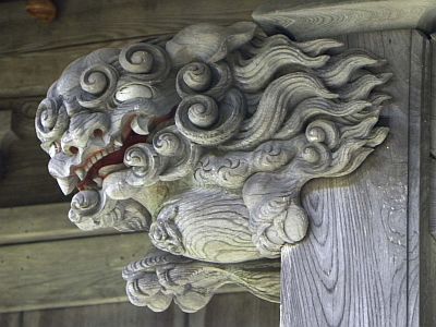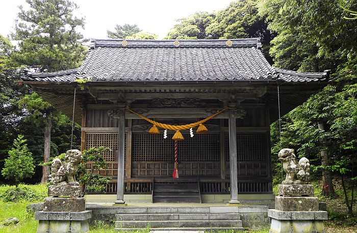 境内に上がると左手には手水舎と境内社らしき社殿が配され、右奥にも境内社。中央奥に出雲狛犬に護られた入母屋造りの拝殿と本殿が建立されています。
