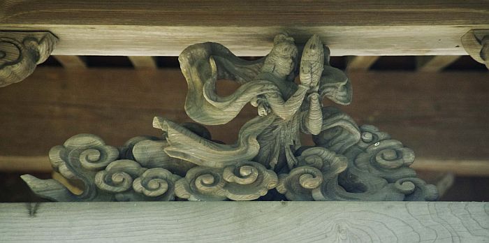 | 拝殿目貫彫刻・笙を手に持つ天女 |