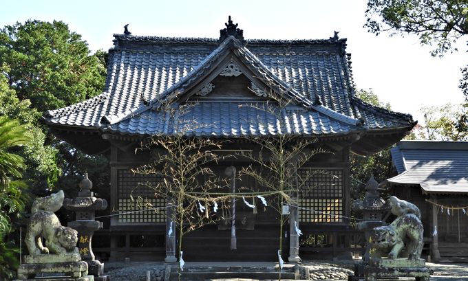 東経130度25分22.54秒、北緯33度11分45.87秒に鎮座。