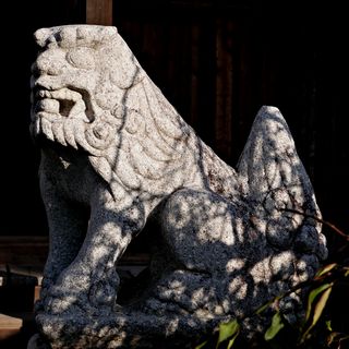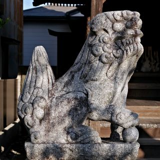 鞘堂前の狛犬。拡大写真はこちら。