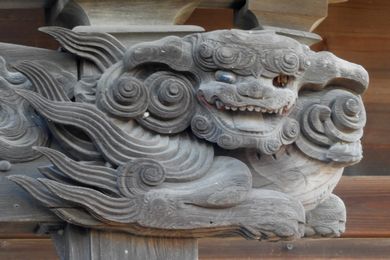 向拝の龍と木鼻の狛犬