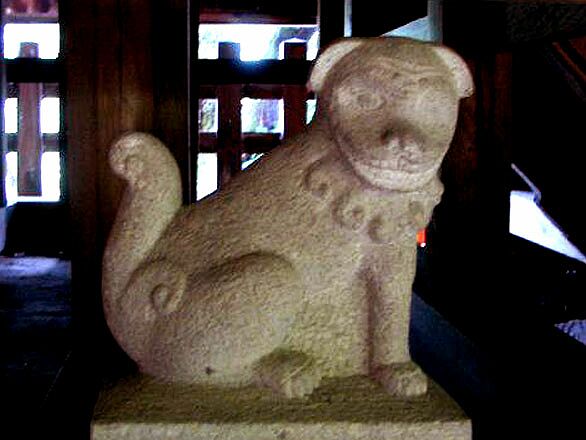 こちらも阿吽が反対です。耳を後ろに伏せ、顔もきちんと出来てきて、尻尾も立ち上がり、かなり犬になりました。耳と口には彩色の跡があるように見えます。
