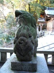玉垣から見上げる逆さ狛犬。青森県の岩木山神社についで二例目です。