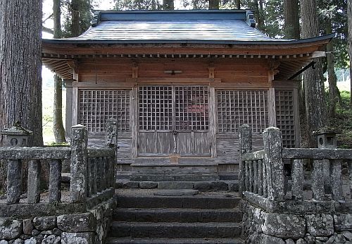 この神社は郡上八幡の市街地から国道472号線で北上し、明宝大谷から寒水川沿いに82号線で約2km程遡ると、公民館上に鎮座しています。私達が持って行った地図の神社マークとは大分離れた位置にあり、周囲をぐるぐると回ったあげく神社の後方に出てしまい、又、少し下まで戻ってやっと寒水川沿いの入口にたどり着いた、ナビ役の私としては苦い思い出の神社です。