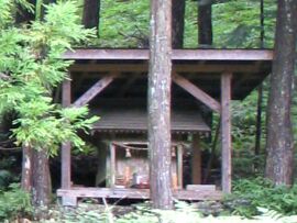 この神社は下呂市から国道257号線で舞台峠を通って中津川市に入ると、1.8km程で小和知バス停があり、そこから西に入る道路の突き当たり、山裾に鎮座しています。豊かな森の中の、閑静で、神の坐します所に相応しい、静かで落ち着いた神社です。本殿脇には木製の姿勢正しい狛犬が居ました。又、神社の下の右手樹林の中に、山の神を祀った小さな社殿がありますが、これは江戸期から山の下草刈り、炭焼き、伐採、木材の搬出など山仕事で暮らしていた村人たちの、山の安全を願って各所に山の神を祀ったものを、昭和50年から58年にかけて基盤整備が行われたとき、各地の社をここに集め一社に合祀したものだそうです。ここで行われる山の講は、毎年2月7日と12月7日の2回で、木で作った山仕事の道具や男根、小豆飯、いわしの丸干し、それに御神酒を供え、神事がすむと火を焚き暖をとりながら飲食します。山の講には山で働く者全員が参加、もしこの日山で働くとケガをするといういい伝えがあったからです。山の神は女神で、女性は参加できず、男根が供えられるのもそんなところに理由があるようです。(自然誌調査より)