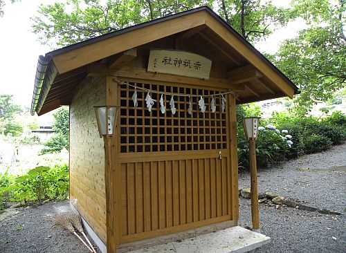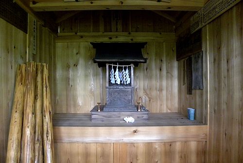 この神社は吾妻線・岩島駅の東約200mに鎮座しています。入口には白木の鳥居が立ち、15m程の参道を行くと社殿が横向きに建てられ、その社殿内に本殿が建立されています。 この社に案内は無く、御祭神・勧請年月・縁起・沿革等は全て不明です。
