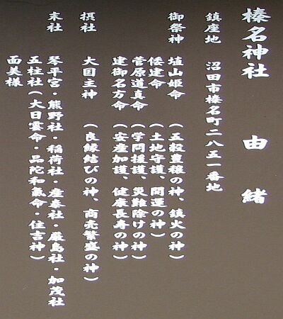 当社は、沼田氏、真田氏、本多氏、黒田氏、土岐氏と歴代城主の崇敬を受け、特に本殿は桃山文化を代表する豪壮華麗な建物です。 明治六年郷社、昭和三年縣社に昇格し、現在利根沼田総鎮守です。」とあります。