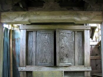 隙間よりうかがう本殿。
