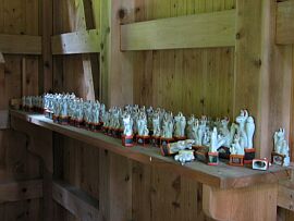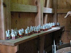 | 拝殿内に沢山奉納されている小さなおk狐様。 さぞや御利益のあるお稲荷様なのでしょう。 |