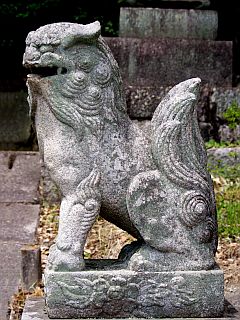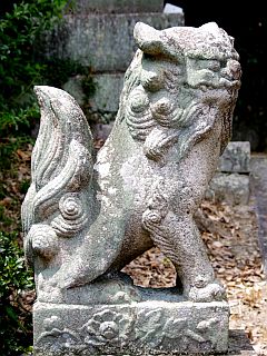 | 奥側の玉乗り狛犬。拡大写真はこちら。 | |