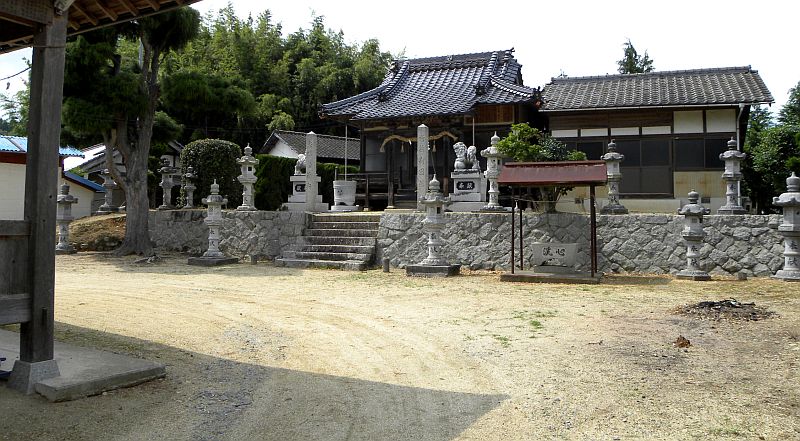 この神社は、広島空港の北東12km程の辺り、なだらかな高原の続く中国山地の農村といった雰囲気の中に鎮座しております。静かで長閑な落ち着いた神社ですが、由緒書きは無く詳細は不明です。