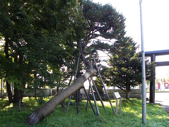神社は自然林の気持ちの良い森の中にあり、三基の鳥居が立っている参道右には北区歴史と文化の八十八選・望郷のアカマツが、手厚い保護を受けながら雄姿を見せています。境内手前には狛犬と手水舎、境内に入ると左手に社務所、右奥に神庫、参道左右に狛犬が配され、この社も又、大きな千鳥破風が前面に突き出た入母屋造りの拝殿・弊殿・神明造りの本殿が建立されています。又、社宝として篠路兵村移住記念碑、屯田開基九十周年記念顕彰碑が建っています。