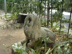 境内の隅で一人寂しく遠吠えする ライオン型狛犬