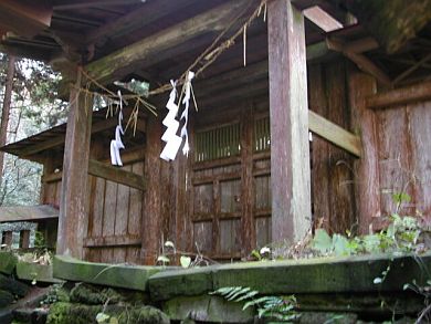 神体は兜石と呼ばれる周囲一五メートルもの巨石で、これは本殿を造らないで板で隠しただけにしてあります。この姿を見せて悪神をおどすため、と伝えられています。また、拝殿の裏側に長さ六メートルほどの船形の大石があります。このへこみにたまった雨水を日照りの時にさらって神に祈ると雨が降るといわれています。