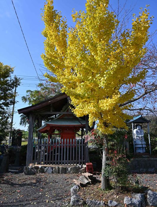 県道157号線が国道349号線と交差する磯部町東交差点から157号線を1.02km進み角の橋本理容所の所で左折し、19m進むと道路右側が浄欣寺と厳島神社です。