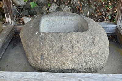 この手水石は真弓山(常陸太田市真弓町)の大理石(寒水石)かな?この辺りではこの形状の手水石が良く見られます。何しろ同じ磯部町内に大理石販売会社が存在してますからね。