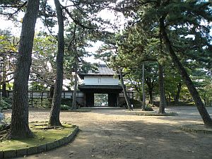 | かつての二ノ丸門(二ノ門)の位置に移築された前川口門の高麗門 |