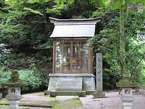 | 金刀比羅社を護る狛犬 珍しく吽には絞り出したような筋入りの角が付き、垂れ耳です。全体の雰囲気は太めで力強いのですが、笑ったような顔がとても可愛い狛犬です。 狛犬の拡大写真はこちらで |