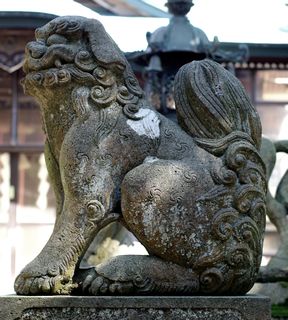 | 境内入口の狛犬。拡大写真はこちら。 | |