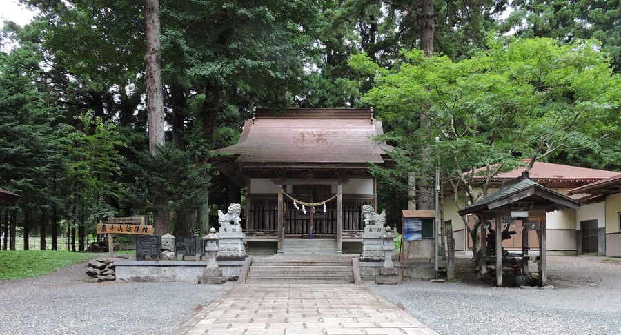 東経140度59分15.73秒、北緯39度47分05.43秒に鎮座。