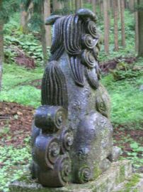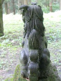 カッパ頭で個性的な陶器製の狛犬。備前の狛犬は判で押したように類型的ですが、ここ南部の陶器狛犬は皆それぞれ個性的です。何処の窯の制作か知りたいものです。