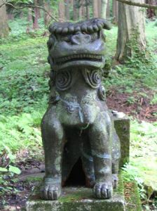 この神社は国道283号線・桑畑で踏切を渡り山側に向かいます。林道のような道を約1.2kmほど走ると、山の中に静かな佇まいを見せた日出神社が鎮座しています。案内板には、元々細越村の日出大明神はある医師がお祀りし尊崇していたものですが、その医師が逝去後、和光法印が神を祀った霊地である。本尊は薬師如来で日光、月光菩薩を従え、十二神将を守護し災難、病魔を除く御利益は他に勝るものである、とあります。詳しくは下記写真でどうぞ。因みに現在の御祭神は少名彦那命と大己貴命です。ここは案内がオーバーでないような深遠たる雰囲気を漂わせ、如何にも神の坐します神聖な霊地を感じさせています。またカッパ頭の個性的な陶器製の狛犬も居りました。