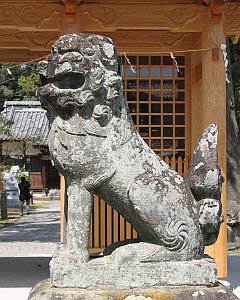 屋根上の狛犬。立っているのは珍しいかも知れません。