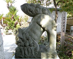 長い鬣と短い尻尾。とてもユニークな狛犬です。拡大写真はこちら。
