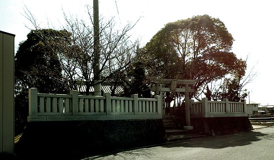 この神社はJR土讃線・善通寺駅の北西約1km、東部幼稚園の北に鎮座しています。地図には「荒認神社」となっていますが、鳥居の額は「荒魂神社」と読めるので誤植と思われます。前方は玉垣、その他は生け垣で区切られ、左側が集会所になっいる拝殿と流造りの本殿が建つ境内は静かな佇まいを見せていました。