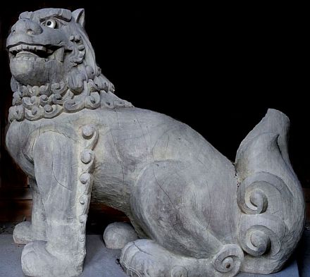 (この狛犬の写真は随神門の格子の間から撮した数枚の写真の合成です。)