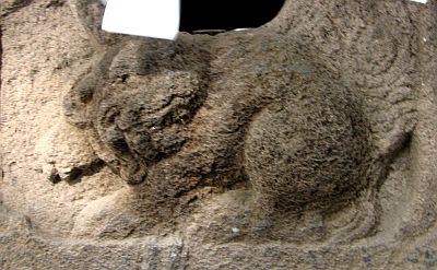 | 右上の末社に彫られている狛犬三態 |