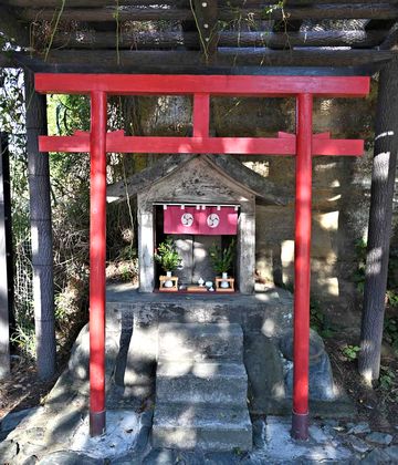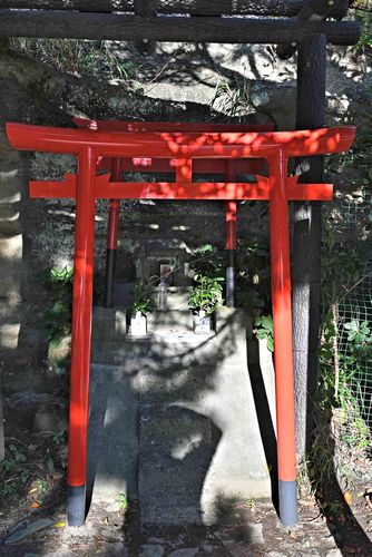 江ノ島の南側にあるバス専用駐車場の入口近くにある聖天島公園の北側に鎮座する神社です。