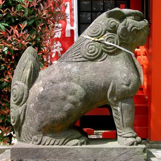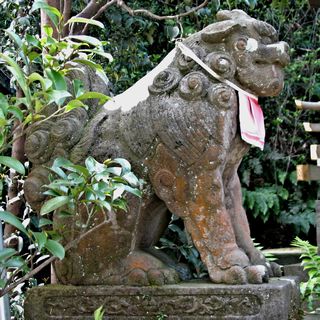 拝殿前左右のやや素朴な江戸狛犬。拡大写真はこちら。