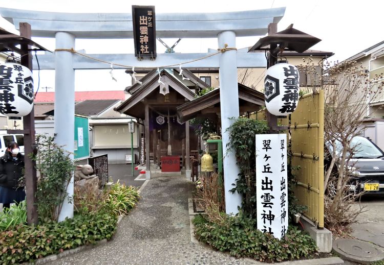 当翠ヶ丘は、戦後農耕地として開発された地域で、昭和32年当時移住していた83世帯の総意によって、村造りに御苦心され、農耕の神、福の神、縁結びの神として御神徳の高い大国主命を祭神とする神社を建立し、この地の守護神として将来の発展と平和な町づくりを期待するため、是非御分霊を賜わるよう出雲大社に懇願したところ、幸に、快諾を得たので、経済情勢不安定の折にもかかわらず、全所帯の浄財拠出と労力奉仕によって、同年9月15日翠ヶ丘神社として建立されたのである。・・・・・・