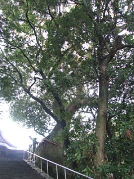 | 沢山の木が寄り添ったかのように見えるご神木 | |