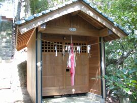この神社は国道55号線・浮津信号から202号線に入り、左手のガソリンスタンドから旧道にはいるとJAがあるので、そこの手前を左折し、室津川沿いの道を進めば、左側道路脇に鳥居が見えてきます。入口前は室津川の清流が流れ、せせらぎの音が心地良く響いています。入口の鳥居からすぐに階段があり、深く暗い鎮守の杜の痩せ尾根上に狭い参道が続いています。境内が狭く、社殿は新しく再建されたように見えました。参道に星神社、社殿横には天神社が祀られていました。