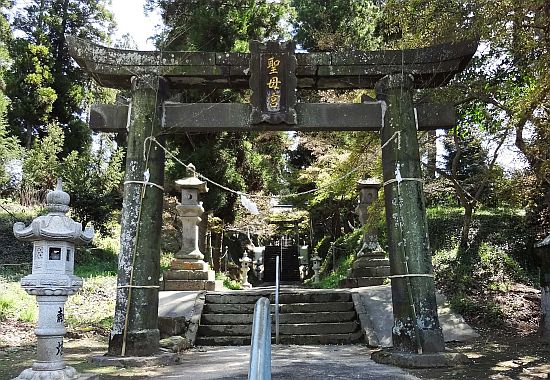 由緒:反正天皇3年(408)神託により聖母大神宮として勧請し、神功皇后を祭祀す。後世宇佐八幡宮(應神天皇、仲哀天皇)を合祀、千田聖母八幡宮と称す。其の後朝廷の崇敬厚く 五十代桓武天皇御宇延暦8年(789)神殿拝殿楼門・連歌堂・御祈祷所・廻楼・仁王門・末社・一・二・三鳥居勅命にて造営あり。建久2年(1191)源頼朝公各殿宇を改築さられ益々御神威盛なり。当後深草院御宇、北条時頼公社殿堂を修復せられしが天正3年(1575)7月13日兵火により灰燼になる。