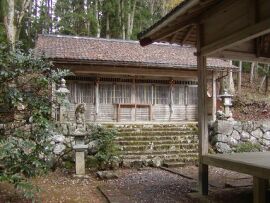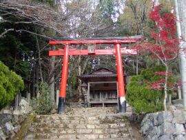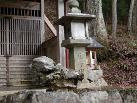 この神社は能見川沿いの、冬には閉鎖してしまう久多広河原線の入口近くにありました。朱の鳥居が目立つので寄ってみましたが、変った造りの社殿と、その前に只の石くれなのか、その昔は狛犬だったのか、謎の物体が置かれていました。