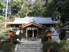 この神社は関西本線・島ケ原駅の北東1qほどの、島ヶ原中学校の隣の、緑の濃い丘の上に鎮座しています。入口の鳥居の傍に自然石を積み上げた大きな灯籠があり文化財のようです。123段の石段をフウフウ言いながら登り切ると、豊かな杜をバックに、拝殿と鬣のフサフサとした狛犬が私達を迎えてくれました。又社務所には代々この神社の宮司を務める家柄の、源頼政公から数えて36代目という、とても暖かいお人柄の勝矢重呂(一番似ているのがこれですが本当はこの字ではなくて左の棒が上下つながっている外字で“もち”と読むそうです)さんがいらして、色々なお話を聞かせて下さいました。又遠路はるばる東京から訪ねてきたというので、ありがたくも帰りには此処の名産の生姜飴を下さいました。旅先でこのような人情に触れると余計ありがたく、一生記憶に残る神社となりました。